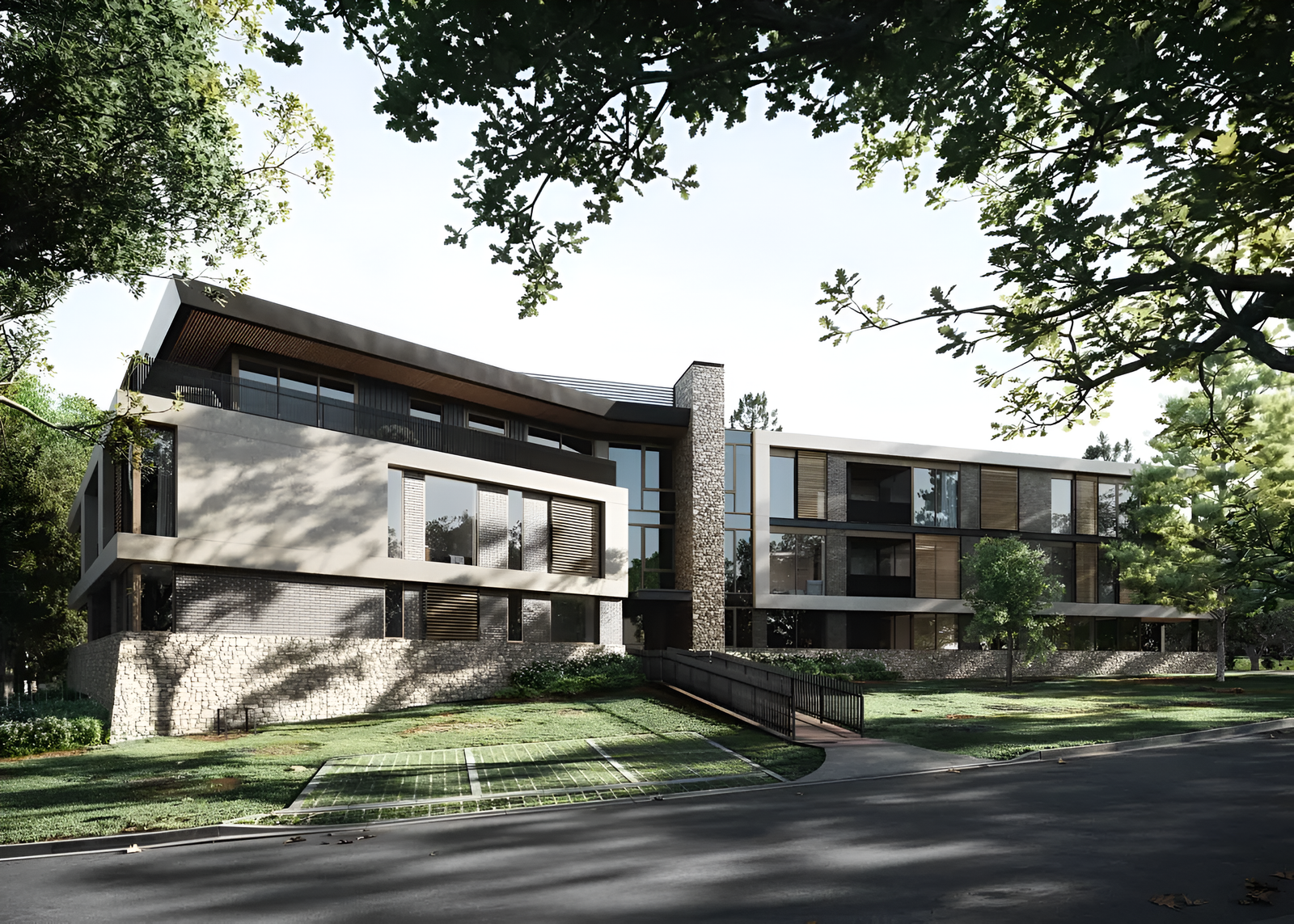 Factor Construction Limited Oakwood Kew Residences is a boutique, high-end collection of 17 residences, including a top floor penthouse. The apartments feature large layouts, premium finishes, and modern luxuries with picturesque views of the Yarra River. The apartments are spread over 3-storeys with 1 basement level for car parking and storage.